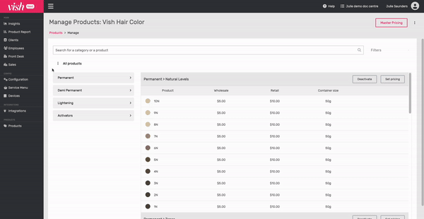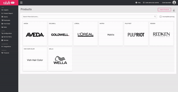 To populate your Vish Color Bar App with products, you need to first import products from a manufacturer. You can import a manufacturer in its entirety, or import individual categories or products individually.